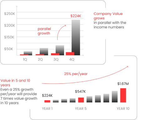 When your earnings exceed $300K, you gain access to top-tier partnership opportunities. You can own between 50% to 100% of the shares and take on a leadership role as CEO or a board member.
