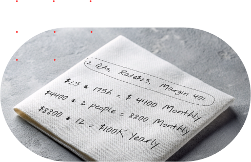 Rate is $25 * 175 hours per month = $4400 total * 2 people ± $8800 per month.